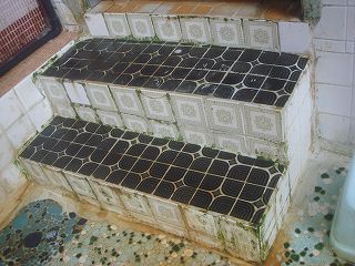_____(浴室の階段)___________=ー_(カビで黒くなった天井)
