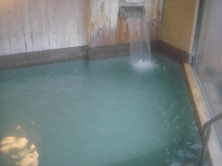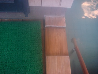 温泉は源泉掛け流しで、少し高い位置にある湯口から投入された温泉が 浴槽の縁にある