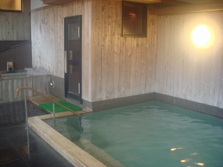 サウナの横に 縁に桧が使われた内湯の浴槽があります。