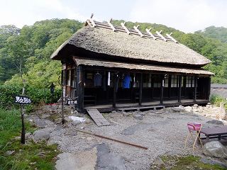 男女別の温泉棟の向かいに打たせ湯の小屋がありますが、わざわざ着替えなくてはならない