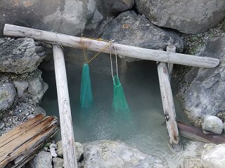 _______(地獄沼)____________(地獄沼で作っている温泉玉子)
