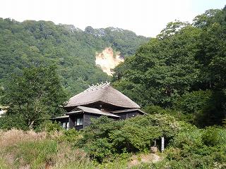 (露天風呂から見た景色、中央に別荘)________(地獄沼から見た別荘)