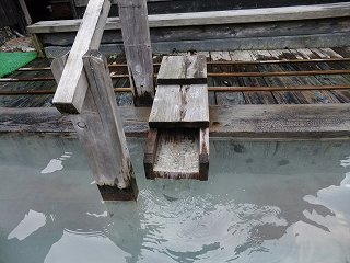 ________(湯口)_____________(排湯溝から流れ出る温泉)