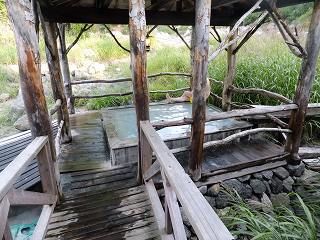今回は、八幡平周辺の温泉と乳頭温泉郷で温泉めぐりをするために 東北道の西根インターを 出た所にある「大更」でガソリンを入れた後、コープで2日分の食料と酒と水を調達してから 出発しました。 194号線を走って 田沢湖高原温泉の先で鶴の湯を左手に見送ると 乳頭温泉郷のイメージと かけ離れた休暇村乳頭温泉郷の大きな建物があって、ここから右上に シラカバ林の中を 登って行くと、間もなく 黒湯温泉の広い駐車場があります。 ![]() __(シラカバ林の中を走る林道)_________(駐車場に立つ黒湯の看板) 黒湯入り口の看板の裏から細い道を下りた所にある乳頭山登山口の下に 冷たくて美味しい 天然水があります。 ![]() _____(乳頭山登山口)______________(美味しい天然水) 天然水の下にある庭に数脚のイスがあって、その奥に受付棟があります。 ![]() ______(庭にあるイス)________________(受付棟) 受付には 黒湯を訪れたことがある芸能人のパネルが沢山あって、(私は利用してませんが) 奥にある休憩所にサインも見えました。 ![]() _____(芸能人の写真)____________(休憩所、正面の壁にサイン) 最初に 受付の右隣にある混浴露天風呂に入りました。 (混浴露天風呂の入り口)混浴露天風呂の脱衣所は かなり狭くて、壁にある温泉の成分表によると 源泉名は黒湯上、 泉質は 単純硫黄泉で、成分に影響を与える項目に 加水・加温・循環・入浴剤・消毒処理は していないと書かれていました。 ![]() ___(靴棚と脱衣所の入り口)_____________(温泉の成分表) 脱衣所から出ると 通路の左に女性用の脱衣所があって、右に 内湯の浴槽があります。 (4〜5人が入れる内湯の浴槽)白濁の温泉は 適度な硫化水素臭に ゆで玉子味がしますが、硫黄泉にしてはマイルドです。 浴槽には きめ細かい湯の花が沢山浮遊していて、硫黄成分で白くなった浴槽に入って温泉を かき混ぜると白濁が増して、しばらく放っておくと湯の花が沈んで透明度が高くなります。 ![]() ________(湯口)______________(浴槽からあふれる温泉) 内湯の奥にある1人分の狭い洗い場には リンスインシャンプーとボディーソープがあって、 カランの代わりに 出っ放しになった舟から湯を汲んで使います。 (洗い場)洗い場の奥にある2連の打たせ湯は ぬるめで、勢いも それほど強くありません。 ( 2連の打たせ湯)内湯から先ほどの通路に戻って、女性用の脱衣所の前を通り過ぎた所が混浴の露天風呂 ですが、このような作りでは 女性が利用するのは難しいと思います。 ![]() ___(左が女性用の脱衣所)______________(混浴露天風呂) 100%源泉掛け流しの温泉は やや熱めの適温です。 露天風呂には屋根が付いてますが、周囲に目隠しがないので解放感は申しぶんなく、木の 枝を上手く使った柱と 天井に吊り下げられたランプ風の照明も風情があります。 ![]() ___(排湯溝から流れ出る温泉)____________(ランプ風の照明) _________________ _____ - - - - - - - - - - - - - - - - - - - - |