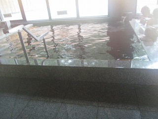 内湯の浴槽は 左奥から電気風呂・高温浴槽・ジェット泡が出ている寝湯・泡風呂が並んで