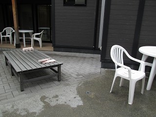 _(右奥が寝湯になった露天風呂)__________(露天風呂にあるイス)