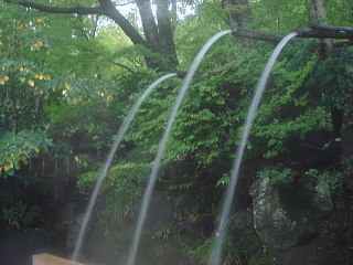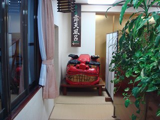 東北道の那須インターから17号線を北上し、道の駅 那須高原友愛の森の先の信号を左折 して30号線を走り、「戸田」の信号を右折して板室温泉に向けて走ると 左に案内があります。 (幸の湯)玄関には 見るからに高そうな木彫りの竜や馬と共に子孫繁栄を願う道祖神があります。 ![]() ______(道祖神と竜)________________(木彫りの馬) ロビーはそれほど広くなく 天井から民芸品のようなものが吊り下げられています。 ![]() ________(受付)________________(ロビーの天井) 壁の上に 鬼のような面と天狗の面があって、露天風呂に行く廊下に 獅子の頭があります。 ![]() ______(天狗の面)_________________(獅子の頭) ロビーから左奥に行くと、狭い通路の右にある仕切りの奥に 宿泊者用の夕食の鍋セットが 準備された広間と 朝食用と思われる テーブル席が見えました。 ![]() ___(鍋がセットされた広間)______________(テーブル席) 窓に面した長い廊下の先に温泉の入り口があって、待合室の奥で 男女の浴室に分かれます。 ![]() __(露天風呂 大滝の湯の入り口)_______(浴室の入り口に掛かる湯のれん) 脱衣所には 籐製の脱衣籠と有料(100円)のスチール製ロッカーがあります。 ![]() ____(スチール製ロッカー)____________(洗面ドレッシング) 浴室に使われていた十和田石は肌触りが良かったが、(旅館なのに)洗い場にはシャンプーが 無いうえに ボディーソープも茶の成分入りだったので、ソープ類は持参した物を使いました。 ※ 以前 茶の成分入りのボディーソープを使って、茶の香りが取れなくて困ったことがあります。 (洗い場)内湯は大きな ヒノキの浴槽で 奥の一部が寝湯になっています。 源泉掛け流しの温泉は無色透明・無味無臭で サラッとした肌触りです。 ![]() _____(内湯の湯口)______________(寝湯で くつろぐ人) 周囲を大きな木に囲まれた露天風呂は広くて、右上に 茅葺屋根がかかった点針滝岩風呂が あって、左下に 迫力のある 打たせ湯があります。 ![]() _(点針滝岩風呂、奥に2つの点針滝)____ __(浴槽を見守る恵比寿様と大黒様) ド ド ド・ ・ と凄い音を立てながら落ちるダイナミックな打たせ湯は、高さがあるうえに湯量が 多いので もみほぐすというよりも痛かった。 ![]() ____(大滝爽快露天風呂)_______________(打たせ湯) 打たせ湯を肩に当てると、頭にも ジンジンと温泉のしぶきが当たります。 自然林に囲まれた露天風呂で豪快な打たせ湯・・、この露天風呂は とても気に入りました。 (打たせ湯を浴びる人)(湯上がり) ロビーの土産物売り場には 手作り感覚の土産物が沢山並んでます。 ![]() _______(大広間)_______________(土産物コーナー) _____ - - - - - - - - - - - - - - - - - - - - |