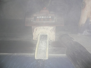 ゑびすやは 塩原温泉の中でも最古の温泉といわれ、秘湯中の秘湯という源泉を持つ温泉で 民間活力開発機構温泉療養の宿・温泉遺産認定の宿・源泉湯宿を守る会々員・現代湯治 研究会々員・日本温泉地域学会々員・とちぎにごり湯の会々員です。 日本秘湯を守る会の会員ではありませんが、浴室に向かう通路の壁にある色々な有名人の サインと一緒に、日本秘湯を守る会の関口悦郎氏の写真もありました。 東北道の西那須野塩原インターから400号線を塩原方面へ15キロ。 (公式サイトより) ![]() ______(ゑびすや)_______________(ゑびすやの看板) 受付の前に熊や鳥の剥製が並んでいますが、存在感が大きかったのは吉田茂氏の封書です。 ![]() _______(帳場)__________________(ロビー) 浴室の手前に 胃腸病に効果があるという源泉の飲泉所がありますが、そのままでは凄く苦い ので 6倍に希釈して飲むように書かれた案内がありました。 ![]() _______(飲泉所)_______________(源泉湯宿認定証) 脱衣所は狭くて 脱衣棚もプラスチック製の脱衣籠があるだけです。 脱衣所の上に神棚がありましたが、温泉と神仏などを関連付けている所が多いわりに 実際に神棚を祀っている所は珍しい。 ![]() _______(脱衣籠)_____________(神棚、手ブレしちゃった) 薄暗い浴室には硫化水素臭が充満していて、壁に付いた温泉の結晶が この温泉の歴史の 長さと硫黄成分の濃さを示していて、天井だけは 改修されてプラスチックになってました。 ![]() ___(小さな鏡がある洗い場)_________(浴槽の壁、白いのが温泉の成分) 温泉は 炭酸泉の梶原の湯(現在は硫黄泉に分類されているらしい)と、硫黄泉の弘法の湯が あって、どちらも白濁ですが 梶原の湯の方が温度が低かった。 梶原の湯は歴史が古く、毎年9月に行われる「古式湯祭り」で御神湯として使われる由緒 正しい温泉です。 ![]() _(左が梶原の湯で、右が弘法の湯)__________(梶原の湯の湯口) 弘法の湯の浴槽の縁には 浴槽からあふれた温泉によって硫黄成分の結晶ができています。 (弘法の湯の結晶)弘法の湯は間欠泉で、5〜6分おきに竹筒から噴出する源泉が 直接浴槽に注ぎ込まれると いうワイルドな作りは秘湯の雰囲気を存分に楽しませてくれます。 ![]() _____(待機中の源泉)_____________(勢い良く噴出する源泉) 婦人風呂には弘法の湯しかないようで、梶原の湯に興味を持つ女性が たまに こちらを覗く ものの、入ってくる人はいませんでした。 出入り口のドアは 婦人風呂からのみ男性側に出入り出来るようになっていますが、内湯の 混浴は抵抗感があるようで、他所でも あまり見かけたことがありません。 (婦人風呂の出入り口)_____ - - - - - - - - - - - - - - - - - - - - |