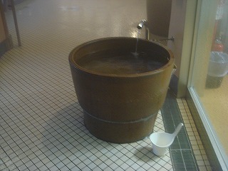 紀勢道の紀伊長島インターから海岸線を南下し、尾鷲市街の先から42号線に入って西に走り、 飛鳥の町にある「小阪」の信号を右折し 五郷の町で左折して十津川温泉に向けて走ると、 北山村の町を抜けた先の左に道の駅おくとろがあって、その敷地内の右奥にあります。 (おくとろ温泉)こちらの施設は2011年5月にリニューアルしたばかりで 館内はピカピカです。 (受付)受付の前に 北山村名産の「じゃばら」という柑橘類を使った土産物が沢山並んでました。 (じゃばらが ぎゅっ)受付の前に館内の案内図があります。 ※ 露天風呂の「いかだ」は、北山村の名物である いかだ下りに由来しているようです。 --------![]() (画像をクリックすると拡大します)____(浴室の入り口に掛かる湯のれん) 脱衣所も清掃が行き届いてキレイです。 --------![]() (ユニークな桶が置かれた洗面ドレッシング)_(脱衣棚とスチール製ロッカー) 浴室に入ると大きな源泉槽に入った かけ湯があって、その隣に 飲泉の湯口があります。 --------![]() _______(源泉槽)________________(飲泉場) 洗い場のシャワーは 自分で出したり止めたり出来るタイプで使いやすかった。 (洗い場)内湯は8人が入れる大きさで 浴槽の窓側からジェットバブルが出ています。 (内湯)露天風呂には 樽風呂の「じゃばら湯」と岩風呂の「いかだ風呂」があって、じゃばら湯には 名産の柑橘類 じゃばらが浮かんでました。 --------![]() __(樽風呂、手ブレしちゃった)_______(樽湯に浮かぶ じゃばら) いかだ風呂は10人が入れる大きさで 湯口が2つあります。 無色透明の温泉は わずかに硫化水素臭がして キュッキュッとした肌ざわりです。 (いかだ風呂)露天風呂には目隠しの塀がないので開放感は申し分ありません。 かだ風呂の左に いかだのような丸太がありましたが、この時は立ち入り禁止になってました。 (露天風呂から見たダム湖、左手前が いかだ)おくとろ温泉は 全ての浴槽が源泉かけ流し(一部加温あり)でした。