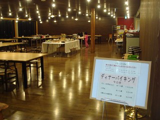 (湯上り) 湯あがりサロンにあった 地元の木材で作ったようなイスは座りやすかった。 レストルームは 横になってくつろげない中途半端な広さです。 --------![]() _____(湯あがりサロン)___________(レストルーム) ↓の画像は、↑の湯あがりサロンの壁にある写真です。 ![]() (左は 川に紙のようなものを撒く巫女さん、右は いかだに乗った花嫁さん) 受付の隣にある宿泊棟の じゃばら食堂では ディナーバイキングをやってました。 ランチ 11:00〜14:00、ディナー 17:00〜20:00、(90分1000円) (ディナーバイキング)館内の案内図では じゃばら食堂の奥に座敷の間があるようでしたが、食堂はバイキングの 最中だったので 確認するのを諦めました。 _____ - - - - - - - - - - - - - - - - - - - - |