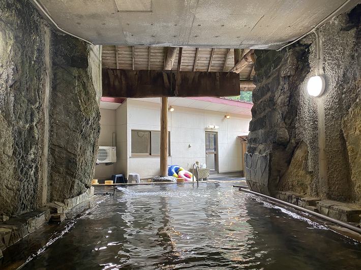 岩窟風呂の左下に打たせ湯のようなものがありましたが、利用して