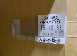 東北道の福島飯坂インターから60分で米沢、米沢市街から小野川街道 温泉街に入ると間もなく右に行く道路があるので そこを曲がると左に滝湯があって、その 向かいに 旅館組合の駐車場があります。 ![]() ___(小野川温泉の入り口)________________(滝湯) 温泉の入り口の左に滝湯の由来が書かれていて、右に 入浴券の券売機があります。 ![]() ______(滝湯の由来)________________(券売機) 滝湯は建替えられたばかりで 中はキレイです。 ![]() _______(脱衣棚)________________(脱衣所の腰掛) 洗面台はシンプルですが トイレはウォシュレットタイプです。 ![]() _______(洗面台)____________(ウォシュレット付きのトイレ) 番台がいない共同浴場なので、無料入浴を防止する為に 入浴中は脱衣棚のポケットに 入浴券を掲示します。 ![]() ___(脱衣棚の入浴券入れ)___________(滝湯の案内と注意書き) 滝湯の管理組合がしっかりしているのか 浴室も清掃が行き届いていて、利用者の大半は 地元の人のようで 使用後のイスを洗面器の上に載せるというルールが守られていますが、 250円で利用できる共同浴場なので ソープ類はありません。 (キレイな洗い場)3人が入れる浴槽はタイル張りで、左側の壁に取り付けられた手すりに温度計があります。 ![]() ________(浴槽)________________(温度計は42度) 無色透明の温泉は 浴槽の中に大きめの湯の花が浮かんでいて、心地よい硫化水素臭に 酸っぱいとしょっぱいの中間ぐらいの味がして キュッキュとした肌ざわりです。 ※ 温泉は私の好きなタイプの泉質で かなり気に入りました。 (湯口)温泉は100%の源泉掛け流しで、浴槽からあふれた温泉は 洗い場の排水溝に流れ込んで います。 (浴槽からあふれる温泉)パンフレットや温泉分析書は「滝湯」ですが、入り口の看板は「滝の湯」です。 (夕方の滝湯、看板は滝の湯)
