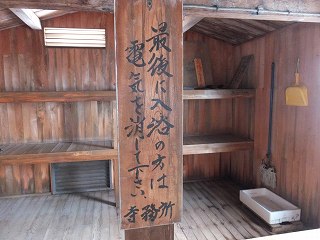 この時の 古滝の湯と冷抜の湯は女性専用でしたが、温泉を目的にした入山者は私が最初で 中に人の気配がしなかったので、後から来た観光客の女性にお願いをして 中の写真を撮って もらいました。 ※ 入浴者がいなくても 女性風呂を覗くのは軽犯罪にあたるそうです。 (冷抜の湯) ![]() ___(冷抜の湯の温泉分析書)__________(湯口が2本あるようです) 古滝の湯には入り口が2つあるので 混浴になる時があるのかもしれません。 (入り口が2つある古滝の湯) ![]() ___(古滝の湯の温泉分析書)________(反対側の奥に脱衣所が写ってます) 温泉から上がって恐山の地獄を見に行った所に、源泉口と思われる箱から出たホースが ありました。 (箱から出たホース)_____ - - - - - - - - - - - - - - - - - - - - - |