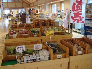 フロントの前にある農産物直売所には 清里町内で採れた新鮮野菜が毎朝店頭に並べられて