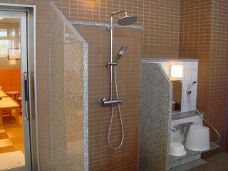 ___(立って使うシャワー)___________(仕切り板が付いた洗い場)