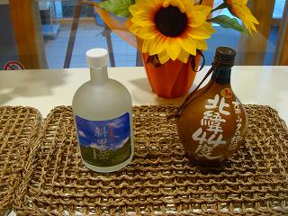 ロビーにあった焼酎「北緯 44度」を一口舐めてみたら、舌が焼けるようなアルコール度でした。