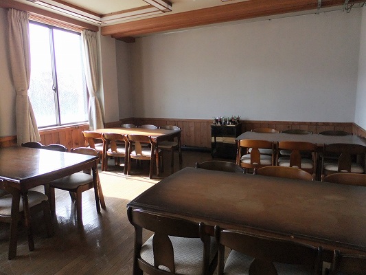 大食堂の隣にある 別室の食堂には 重厚感のあるテーブルが