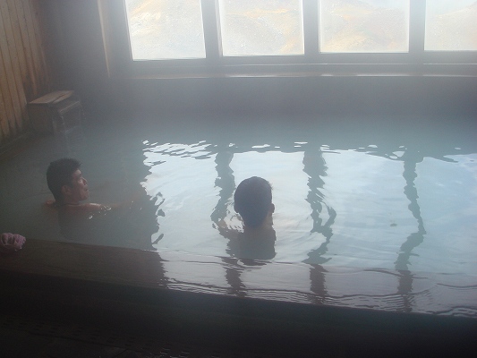浴室には硫化水素臭が充満していて、白濁の温泉を口にすると