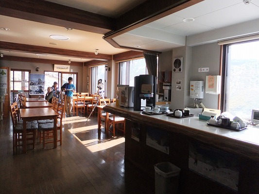 長野道の豊科インターから147号線で信濃大町まで行き、「俵町一」の 信号を左折して走ると 45号線の終点が扇沢で、そこからトロリーバスと ケーブルカーとロープウェーとトロリーバスで室堂まで ※ 黒部立山アルペンルートのオフィシャルサイトに見やすい表があります。 ※ 私のレポは こちらです。 ![]() ______(室堂を散策したレポはこちらです) ![]() __________(ミクリガ池と立山) ミクリガ池から5分ほど歩いた所に みくりが池温泉があって、そこから 5分ほど歩くと 左下に雷鳥荘が見えてきますが・・ ![]() ______________(雷鳥荘) ここから先の尾根伝いの道はアップダウンが大きい。 ![]() ____________(尾根伝いの道) 尾根道を20分ほど歩いた所にベンチが並ぶ庭があって・・ ![]() _________(ベンチが並ぶ雷鳥荘の庭) その左下に雷鳥荘の玄関があります。 ![]() ____________(雷鳥荘の玄関) 雷鳥荘は登山者の利用が多いようで、フロント前の広い玄関に ハイカーが登山靴を履き替えるのに楽なイスもあります。 ![]() ____________(フロント) 飾り気のない外観を見た時には 味気のない宿だろうと思いましたが、 館内は 風合いのある木の感じが良い 落ちついた作りです。 ![]() ________(談話室にある天体望遠鏡) ![]() ________(フード型の暖炉がある談話室) 喫茶コーナーのテラスにある丸太作りのテーブルから見上げると 大汝山と雄山が見えました。 ![]() ___________(喫茶コーナー) ![]() __________(喫茶コーナーのテラス) 雷鳥荘の予約を入れたのが扇沢を出発する時だったので個室が 取れなくて 10人の相部屋になってしまいました。 ![]() _____________(相部屋) 相部屋は 5組のダブルベッドに対して宿泊者が6人(1組は夫婦) だったので、ベッドの上段を荷物置き場として使えました。 ![]() ________(私が利用したダブルベッド) 洗面所とトイレも共同ですが、白を基調にした洗面所は清潔感が あって 清掃も隅々まで行き届いています。 ![]() _____________(洗面所) ![]() ________(ウォシュレット付きのトイレ) 清掃中の部屋のドアが開いていた時に 部屋の中が見えました。 ![]() _________(小さな床の間が付いた和室) 素泊まり客(6150円から)用に 自炊できる流し台と全自動洗濯機が あります。 ![]() ______(浴室の入り口の前にある自炊部屋)