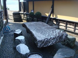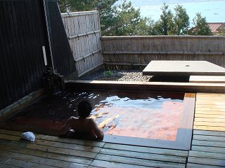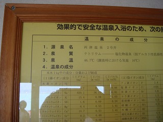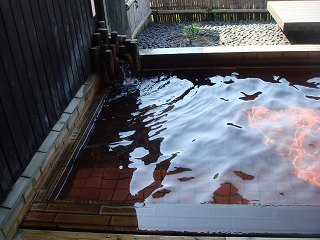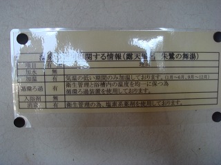 両津港のフェリーターミナルから加茂湖に沿って65号線を南下すると、3分走った所で左上に 佐渡グリーンホテルきらくがあって、その向かいにある2棟の建物の左が朱鷺の舞湯です。 ※ 駐車場は ホテルきらくの駐車場を利用します。 ![]() ______(朱鷺の舞湯)__________(朱鷺伝説、クリックで拡大します) こちらには管理人がいないので、料金は ホテルのフロントで払います。 入口に 貴重品用のスチール製ロッカー(無料)があります。 ![]() _(浴室の入り口に掛かる湯のれん)___________(貴重品ロッカー) 脱衣所は それほど広くありませんが清掃が行き届いていて、黒と白の取り合わせにセンスの 良さを感じました。 ![]() ______(黒い洗面台)________________(脱衣棚) 脱衣所の壁にある温泉分析書によると 源泉名は両津温泉2号井、泉質は ナトリウム-塩化 物温泉で、温泉の利用に関する情報に 加水・なし、加温・循環ろ過・消毒・有りとのことです。 ![]() ______(温泉分析書)____________(温泉の利用に関する情報) 洗い場のシャワーは温度調節が出来ず、ソープ類はボディソープだけでシャンプーはありま せん。 (洗い場)温泉は 屋根が付いた露天風呂だけで内湯はありません。 4人が入れる浴槽の床にはスノコが張られていて、無色透明・無味無臭の温泉は ぬるめで、 ツルスベの肌触りです。 ※ 温泉が赤く見えるのはタイルの色で、かすかに味がしましたが無味といっていいと思います。 (浴槽の湯口)温泉は浴槽からオーバーフローになっていて、消毒・循環ろ過をしているとのことですが 外気にさらされているためか カルキ臭は感じませんでした。 (人がいると浴槽の大きさが分かります)浴槽の外には 竹の柵で囲まれた所にテーブルがあって、竹柵の奥に 加茂湖と頂に雪を のせた大佐渡の山並みが見えました。 (露天風呂から見た金北山)館内には湯上りの休憩場所がなく、入り口の隣に 大きな石のテーブルがあります。 (玄関の隣にある石のテーブル)朱鷺の舞湯から上がった後、隣にある諏訪神社に参拝しました。 (諏訪神社)____ - - - - - - - - - - - - - - - - - - - - |