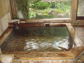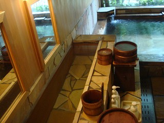 ![]() ______(嵯峨塩館)______________(日帰り入浴の案内) 高級旅館のような感じなので1000円ぐらいすると思ってたら、なんと!500円でした。 (雰囲気の良い帳場)玄関の天井には重厚な梁があり、ロビーの周りには 秘湯の宿らしい調度品が並んでいます。 ![]() _(甲州の民家を思わせる談話室)_________(右の柱の横に 熊の剥製) 脱衣所の壁に 嵯峨塩館の周りで撮ったと思われる自然や植物のパネルが飾られてます。 ![]() ___(手の込んだパネル写真)____________(洗面ドレッシング) 浴室の床には 肌触りの良い茶色の石板が使われています。 ※ 下の画像の2時の位置にある蛇口の黒い札に「PH10.2の源泉で 飲めます」と書かれて _-ました。 (洗い場)反対側の洗い場は、シャワーの代わりに 源泉の槽から手桶で温泉を汲んで使います。 ※ PH10.2の高アルカリの温泉は 無色透明・無味無臭で優しい肌触りです。 ![]() ____(反対側の洗い場)____________(手桶と鏡の間が源泉の槽) 内湯の浴槽には 肌触りの良い古代桧が使われています。 ※ 温泉は源泉掛け流しだと思いますが、湯口から出ている量と浴槽から露天風呂に流れ _-出ている量には かなりの差がありました。 (古来桧の内湯、窓の下に排湯口)露天は岩風呂で、内湯の浴槽からあふれた温泉が流れる樋に 日本最古のワイン用ブドウ棚 の杭が使われています。 ※ 温泉はぬるくて、浴槽の反対側に「お湯は こちらから出ています」の表示がありました。 ![]() ______(露天風呂)________________(ぶどう棚の杭) 露天風呂の下に日川が流れているので 紅葉の時期に入るのも良さそうです。 (露天風呂から見た日川)(湯あがり) 温泉から上がると、浴室の入り口に 冷たい麦茶が用意されてました。 ![]() ________(麦茶)___________(浴室の入り口にある恵林寺の鬼瓦) 廊下を歩いている時に、開いた戸から 落ち着いた作りの部屋が見えました。 (客室、左手前はベッド)_____ - - - - - - - - - - - - - - - - - - - - - |