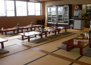 2階には食事が出来る大広間と個室があって、入り口が開いた個室の奥に 貸切の温泉が