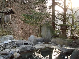 中央道の勝沼インターを出たら 34号線の等々力から国道411号線で奥多摩方面に走り、 大菩薩の湯から1Kmほど登ると 左に介山記念館があって、その右に駐車場があります。 (雲峰荘)日本秘湯を守る会々員の宿だけあって 帳場周りは重厚感のある作りです。 外来入浴の場合は内湯と露天風呂の料金が別になっていて、両方入ると千円になります。 (受付)まず内湯に入りましたが、脱衣所は 旅館とは思えないほど質素な作りです。 ![]() ____(脱衣所の洗面台)_______________(内湯の洗い場) 浴室の左が 天然の岩を使った大きな源泉(冷泉)浴槽ですが、2月だったので冷たくて入れ ませんでした。 ![]() _(源泉大浴槽、右に飲泉の湯口)_____________(飲泉の湯口) 洗い場の奥にある もう1つの加温された浴槽は 無色透明・無味無臭でサラッとした肌触りの 優しい泉質です。 (加温された浴槽)露天風呂は、旅館の前に架かる橋を渡って少し下りた所にある別棟の1階にあります。 (露天風呂の入り口)露天風呂は混浴で、脱衣所は男女別になっています。 (露天風呂の脱衣所の洗面台)露天風呂には(裂石温泉のシンボルになっている)屋根に巨石が載った岩風呂があります。 浴槽は2つに分かれていて、上の浴槽からあふれた温泉が 下の浴槽に流れ込んでいますが、 下の浴槽の方が大きいのに温度が高かったので 浴槽内にも温泉の注入口があるようです。 (巨岩が載った露天風呂)露天風呂には目隠しの塀がありませんが、山に囲まれてるので 開放感はいまいちです。 (露天風呂から見た景色)(湯上り) ロビーには地元特産の土産物が並んでいて、丸太をくり抜いて作られた火鉢には鉄瓶と 茶菓子がのってました。 ![]() ___(ロビーに並んだ土産物)_____________(風情のある火鉢) _____ - - - - - - - - - - - - - - - - - - - - |