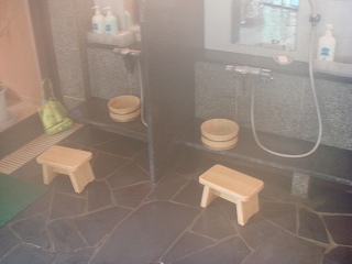 国道52号線を南下して、南部の町を過ぎた所にある「富栄橋西詰」の信号を左折して富士川を 渡ったら身延線に沿って南下し、井出駅の先にある城山トンネルの出口から左に入って 佐野 川に沿って走ると右にあります。 (佐野川温泉)ゴールデンウィーク中とはいえ 2時半という時間帯なので空いてるだろうと思ってたら、 駐車場に沢山の車がありました。 (受付)2005年3月にリニューアルされたそうですが、改装したのはロッカールームから先だけで、 脱衣所のロッカーは鍵付きですが 幅が狭くて使いにくかった。 ![]() _____(縦長のロッカー)_____________(洗面ドレッシング) 浴室に入ると 左側の壁に仕切り板が付いた洗い場が並んでます。 (洗い場)内湯には大きな浴槽が2つ並んでい、それぞれの浴槽は 冷たいままの源泉と加温された 温泉になっていて、双方の温泉を交互に繰り返しながら入ります。 (内湯の浴槽、右が冷泉)露天風呂の浴槽も2つに分かれていて、奥の浴槽が冷たいままの源泉で、手前は 多少加温 されてますが、内湯の加温された浴槽に比べると かなりぬるい。 無色透明の温泉は適度な硫化水素臭がして、冷泉の湯口では 強い泡付があります。 ![]() (脱衣所の網戸越しに見た露天風呂)_______(奥の冷たい浴槽、左奥が湯口) 今までに 入浴客が源泉を汲んで持ち帰るというのを何度か見たことがありますが、こちらの 温泉を持ち帰る人の割合と量は半端でなかった。 ほとんどが常連のようで 1人が何本ものペットボトルを持ち込んでいて、中にはポリタンクで 持ち帰っている人もいました。 (これで1人分です)(湯上がり) 湯上がりは 喫茶コーナーのイスで池を眺めながら休むこともできるし、畳敷きの大広間で 休む事も出来ますが、食事の提供時間が終わっていたので 私は食べられませんでした。 ![]() ___(喫茶コーナーの休憩所)___________(休憩所の横にある池) 施設は小規模ですが、フロントの横に並ぶ土産物は 種類も数も多かった。 ![]() ____(大広間の休憩所)______________(土産物コーナー) _____ - - - - - - - - - - - - - - - - - - - - |