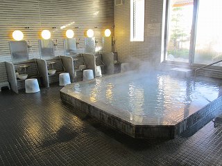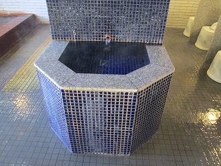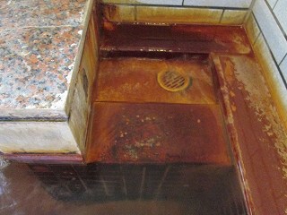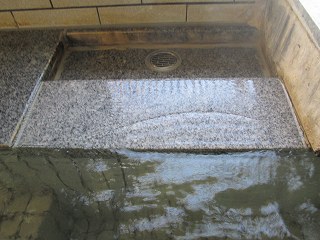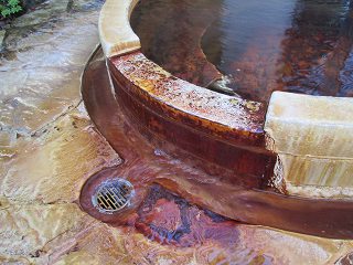 (ホテルの湯治処)受付の前にテーブルセットが並んでいて、左奥が 小上がりになっていて・・ ![]() __(小上がりとテーブルセット)______________(受付) ロビーの奥に浴室の入り口があります。 (浴室の入り口に掛かる湯のれん)脱衣所は広くて ベンチタイプのイスとウォーターサーバーがあります。 ![]() __(無料のスチール製ロッカー)___________(洗面ドレッシング) 脱衣所にある温泉分析書によると 源泉名は島原温泉で、泉質は 含二酸化炭素-マグネ シウム・カルシウム・ナトリウム-炭酸水素塩温泉です。 (温泉分析書)浴室に入ると 青いタイル張りの かけ湯があります。 (かけ湯)かけ湯の右奥に7つの洗い場があって、左の壁に 5つの洗い場があります。 ![]() __(仕切り板が付いた洗い場)_________(シャンプーはリンスインタイプ) 内湯には 2つの温泉があって、無色透明の温泉は 源泉名が島原温泉(2源泉の混合泉)で、 泉質は マグネシウム・ナトリウム-炭酸水素塩温泉です。 ![]() ____(島原温泉の浴槽)____________(島原温泉の温泉分析書) 無色透明・無味無臭の温泉は適温で ヌルスベやツルスベなどの特徴がなく、浴槽から あふれた温泉は排水口に流れ込んでいます。 ![]() _____(島原温泉の湯口)___________(浴槽からあふれる温泉) 赤みを帯びた高濃度炭酸泉は、温泉分析書によると 源泉名は島原温泉で、泉質は 含二酸化炭素-マグネシウム・カルシウム・ナトリウム・炭酸水素塩泉です ![]() _____(高濃度炭酸泉)_______________(温泉分析書) 炭酸泉ゆえ温度はぬるめで ほどほどの泡つきです。 ![]() ___(高濃度炭酸泉の湯口)____________(浴槽からあふれる温泉) 内湯には、2つの浴槽の他に サウナと水のかけ湯があります。 (サウナと水のかけ湯)露天風呂に出ると 左に4〜5人が入れる岩風呂があります。 無色透明の島原温泉だと思いますが 循環されているのか真湯に近い肌触りで、浴槽から あふれた温泉は排水口に流れ込んでいます。 ![]() _____(露天岩風呂)_____________(浴槽からあふれる温泉) こちらの一番お勧めの温泉は 露天風呂にある高濃度炭酸泉で 泡付きが半端でありません。 ※ 炭酸濃度は1800〜1900ppmで 国内の温泉のトップレベルだそうです。 冷泉なので 時期的にそのままでは入ることができなくて、一度サウナで体を温めてから入り ました。 温泉は100%の源泉かけ流しですが、冷たさに気を取られて 味見を忘れてしまいました。 ![]() __(露天風呂の高濃度炭酸泉)___________(浴槽からあふれる温泉) 露天風呂の外には島原湾が広がってますが、格子の塀の為に 浴槽から海を見ることは できませんでした。 (目隠しの格子)_____ - - - - - - - - - - - - - - - - - - - - - |