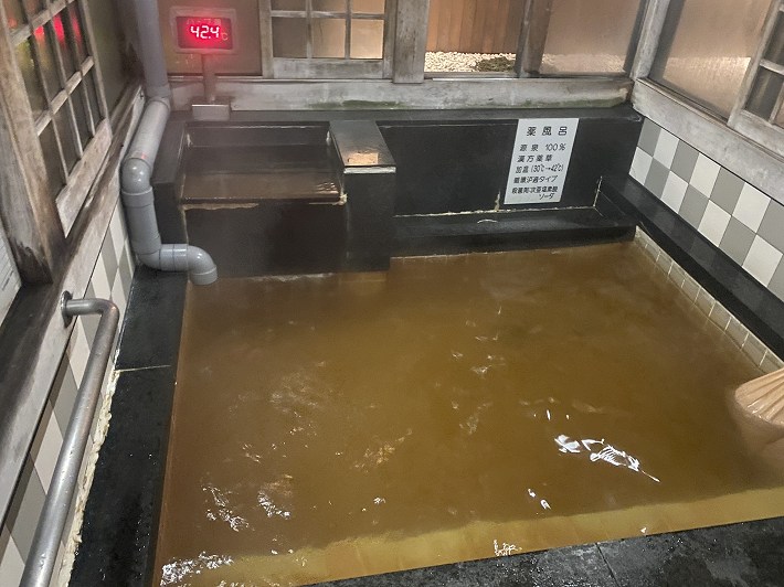 延寿薬湯は2人が入れる大きさで 源泉100%に漢方薬草を加えて