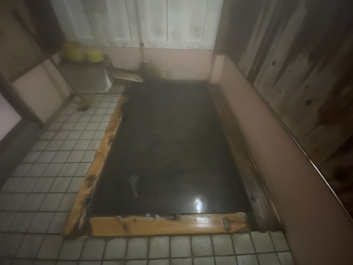 こちらも木の浴槽で 温泉はシジミ汁のような色をしています。