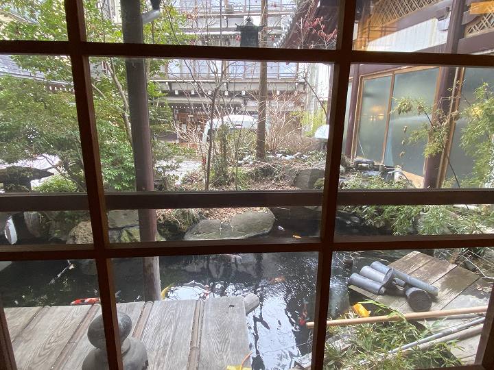 (ロビーの前にある池)