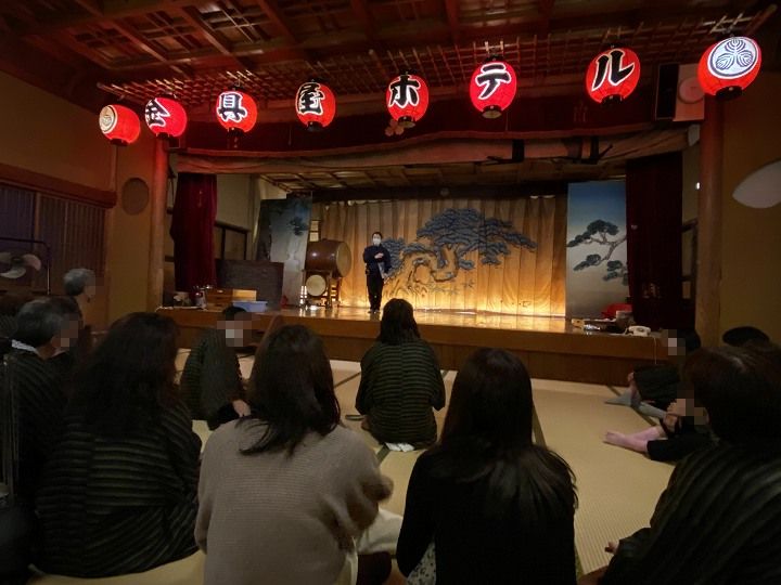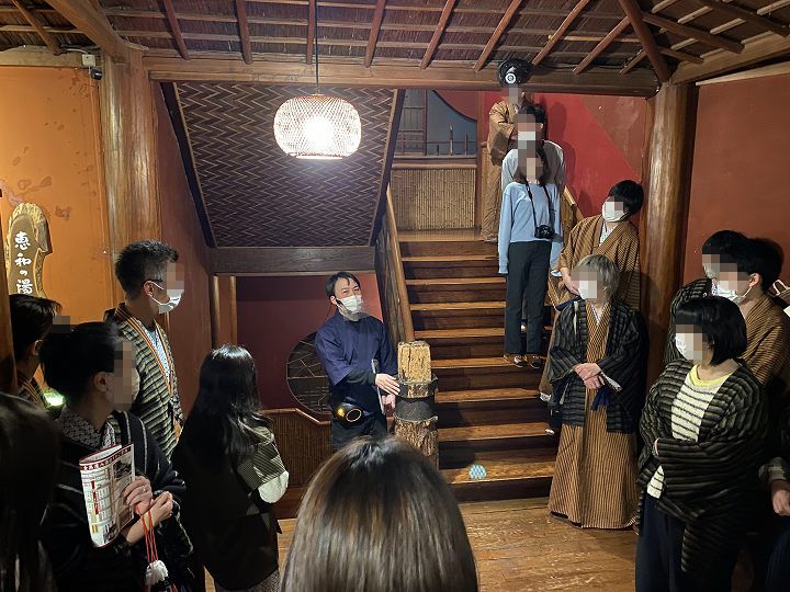(夕食前に行われた金具屋の歴史案内)