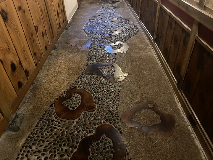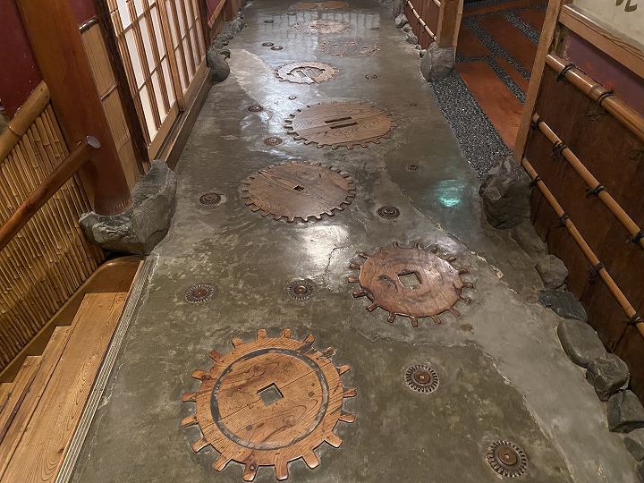 (廊下に埋め込まれた輪切りの木)