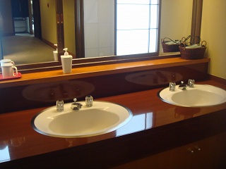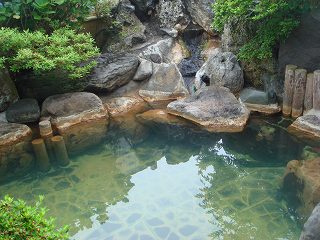渡島半島の東側を278号線(恵山国道)で走ると、鹿部町の南の道路沿いにあります。 (鹿の湯)大正7年創業の純和風割烹旅館だけあって 玄関周りの作りにも気品が感じられます。 ![]() ________(玄関)__________________(帳場) 廊下にはセンスの良い花が活けられ 洗面台も良い雰囲気です。 ![]() _____(廊下の活け花)______________(廊下にある洗面台) フロントから右奥に回って長い廊下を歩いた先に浴室の入り口がありますが、ここから先は 以前の旅館のままの作りでした。 脱衣所は それほど広くなく、脱衣棚には旅館らしい籐の籠が載っていますが 洗面台は 簡素な物です。 ![]() _(浴室の入り口に掛かる湯のれん)________(脱衣所の洗面台と脱衣籠) 浴室の右にある洗い場も簡素な作りです。 (田舎旅館のような洗い場)浴室の入り口に「敷地内に3本の源泉があり、79度のナトリウム塩化物、硫酸塩泉が毎分 100リットル自噴している、源泉が高温のため 熱交換器で温度を下げたうえに地下水を 加水し、浴槽は毎日完全換水の清掃を行っている、内風呂・露天風呂とも かけ流しの 天然温泉・・」と書かれていました。 (深くて やや熱めの内湯)内湯の湯口は 近くにある しかべ間歇泉をイメージしたような作りです。 ※ 高さ15mの温泉が吹き出す しかべ間歇泉のレポはこちらです。 (巨岩の上から温泉が噴出してます)浴室の窓の中央が露天風呂の出入り口になっていて、露天風呂に出ると(海が近いので) 磯の臭いがして 浴槽の周りが庭園風になっています。 露天風呂の浴槽は やや浅めで、庭の一角にある源泉井から引いているという温泉は 源泉の投入量が少なくて かなりぬるい。 ![]() ______(露天風呂)______________(アジサイの花と湯口) うっすらと笹濁りの温泉は かすかに温泉臭がする程度ですが 温泉の成分は濃いようで、 浴槽の岩に温泉成分の結晶が付いています。 ![]() ____(岩に出来た結晶)_____________(岩の陰にある排湯口) 露天風呂は高い塀で囲まれていますが、植木のおかげで 閉塞感を感じることはありません。 (浴槽から見た塀と植木)(湯上り) 冷水を飲んでから 落ち着いた雰囲気の休み処でくつろぎました。 ![]() ________(冷水)__________________(休み処) ____ - - - - - - - - - |