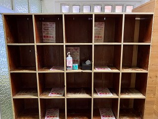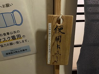 家族風呂は無料の貸切制なので、利用する時は 入口にある木札を裏返して使用中に