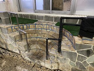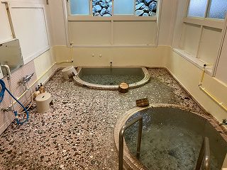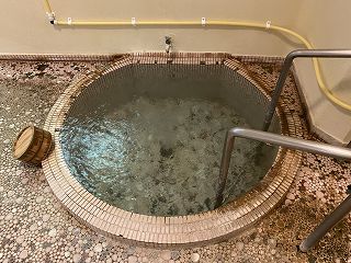 本館の2階にある入口から階段を下りた所にある温泉で、時間制で男女別になったり混浴に