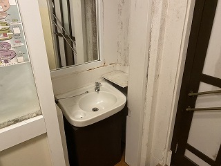 脱衣所は狭くて 洗面台の作りも簡素です。