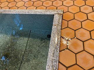 元禄の湯が作られた当時は大きな浴槽が一般的でなかったそうで、御影石作りの浴槽は