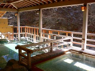 関越道の渋川伊香保インターから353号線を西に走って、中之条の「伊勢町上」の信号を右に 行って道なりに走り、四万温泉の手前から右に入って温泉街の狭い道を走ると左にあります。 車は川の対岸にある大きな駐車場に置いて 宿の車で送迎をしてもらうのですが、この時の 運転手さんの話では、春から始まるNHKの連続ドラマは四万温泉が舞台になるとのことです。 (四万やまぐち館)館内は高級旅館らしい雰囲気で 受付の対応も良かった。 内湯の洗い場の床には温泉用の畳が使われていて、浴槽は ガラスと障子に囲まれている ので、居間で温泉に入っているような感じでした。 源泉掛け流しの温泉は 柔らかい肌触りです。 (障子越しの日差しが気持ち良い内湯)露天風呂の手前に四角い浴槽があって、そこから一段下がった奥に 大きな岩風呂があります 屋根付きの半露天ですが、目隠しの塀がないうえに目の前を清流が流れているので 圧迫感を 感じることはありません。 浴槽に使われている岩の肌触りが良くて、温泉は(浴槽の色が影響しているのか)翡翠の ような美しい色にみえます。 (格子の柵が付いた露天風呂)この時は ほぼ貸し切りの状態で温泉を利用できて 大満足しました。 自然に囲まれた温泉で のんびりしていたら、対岸の林を横切る猿が見えました。 ______ - - - - - - - - - - - - - - - - - - |