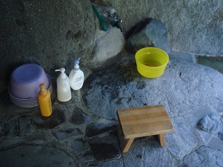 長野道の松本インターから158号線で平湯温泉に行ったら 471号線で栃尾の信号を右折して、 475号線で蒲田川を渡った所にある中尾高原口から右上に登って行くと おもちゃの博物館の 上にあります。 (いとう旅館)前日 道の駅 奥飛騨温泉郷上宝で車中泊をして、翌朝 朝風呂に入るために こちらに来たら、 館主が「旅館の宿泊者の朝食が7時半からなので その時間だと温泉が空いている」というので、 それまで 近くにある足洗いの湯(広大な足湯)と自噴線を見てきました。 ![]() _____(足洗いの湯)____________(中尾地区に数ヶ所ある自噴泉) (湯上りに行ってみた足洗いの湯)頃合を見計らって旅館に戻ると、宿泊者は食事中で 浴室には誰もいませんでした。 ![]() ____(いとう旅館の玄関)__________(浴室の入り口に掛かる湯のれん) 旅館の玄関は洒落た作りですが、脱衣所や浴室は 旅館というより民宿に近い。 ![]() _(質素な作りの洗面ドレッシング)____________(洗い場) 温泉は無色透明・無味無臭にサラっとした肌触りで 温度は やや高めです。 ![]() _____(内湯の浴槽)_________________(湯口) 温泉は100%の源泉掛け流しで、浴槽からあふれた温泉は排水溝に流れ込んでいます。 (排水口に流れ込む温泉)浴室の大きい窓の外に笠ヶ岳が見えました。 (内湯から見た笠ヶ岳)露天風呂は離れているので、一旦 服を着てから移動します。 露天風呂の出口は自動扉ですが、その奥にある浴室の入り口は寂れた感じです。 (露天風呂の湯のれん、緑が男湯)入り口の作りにたがわず、脱衣棚と洗い場も 田舎の温泉地の共同浴場のような感じです。 ![]() _(プラスチックの籠が載った脱衣棚)____________(洗い場) 露天風呂は 浴槽の周りに大きな岩が配置されているうえに周囲を自然林に囲まれているので、 とても贅沢な気分で温泉を楽しめます。 露天風呂は混浴ですが、貸し切りの状態だったので 気兼ねなく利用出来ました。 ![]() _____(広い露天風呂)__________________(湯口) 露天風呂の浴槽からは 樹間に焼岳が見えます。 ![]() ___(露天風呂から見た焼岳)____________(同じくクリヤノ頭) 朝日が差し込む温泉も 雰囲気があって良いですね〜。 (朝日が差し込む温泉)____ - - - - - - - - - - - - - - - - - - - - - |