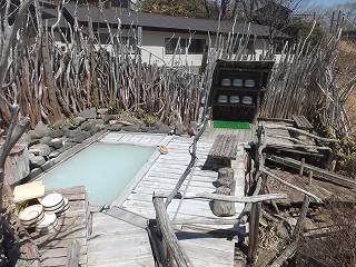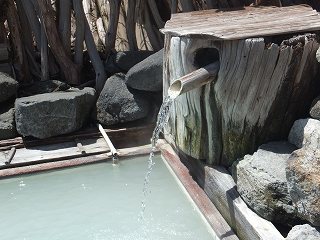 この日は11時からだったのですが、少し早めに着いて宿の人と話をしたら「内湯は清掃をして まだ温泉が一杯になっていませんが、先に露天風呂に入れば その内に内湯も入れるように なると思います」と言われて入ったので、他の客が来るまで貸切の状態で温泉を楽しめました。 (新野地温泉 相模屋旅館)相模屋旅館は日本秘湯を守る会の会員の宿で、この時に対応してくれた若女将と思われる 女性は とても純朴そうな感じの人で、帰る時も 立ち寄り入浴客の私に対して とても丁寧に 挨拶してくれました。 ![]() ___(日本秘湯を守る会の提灯)_______________(フロント) ロビーには ソファーの席とテーブル席があります。 ![]() ______(ソファーの席)__________(喫茶カウンターの前にあるテーブル席) 温泉は ロビーから長い階段を下りた先にあります。 (温泉に下りる階段)長い階段を下りると、左に スチール製のロッカーと内湯の入り口があります。 ※ 先に露天風呂に入ったのですが、分かりやすいように内湯から紹介します。 ![]() (ロッカー、正面の奥が露天風呂の出口)_______(浴室の入り口に掛かる湯のれん) 内湯の脱衣所は狭くて、右の棚に 籐の籠が載った脱衣棚があります。 脱衣所にある正しい温泉利用法によると 源泉名は新野地温泉で、泉質は硫黄泉です。 ![]() ________(脱衣所)________________(正しい温泉利用法) 浴室に入ると 右に鏡・ソープ類・洗面器・イスがありますが、蛇口やシャワーはありません。 ※ 一般的に 白濁の強酸性の温泉施設にはソープ類を置いていない所が多い。 (洗い場?)浴室の左に3人が入れる浴槽がありますが、この時は 掃除をして温泉を入れ替えたばかり なので 温泉は白濁してませんでした。 ※ 白濁の硫黄泉は、湧出時は無色透明で 空気に触れることで白濁します。 ![]() ______(内湯の浴槽)_________________(浴室の天井) 温泉の温度は やや熱めの適温で、(脱衣所の用紙には書かれていませんでしたが)立地 条件や温泉の状況から判断して 間違いなく100%の源泉掛け流しだと思います。 ![]() ________(湯口)__________________(温泉の排出口) 温泉は白濁していませんでしたが、浴槽の中には 沢山の湯の花が浮遊していました。 (温泉の湯の花)内湯から上がってから服を羽織って露天風呂に移動しましたが、外に出てビックリ!しました。 山の斜面に作られた手作り感のある通路の奥から 温泉の噴煙が勢い良く上がっていました。 ![]() ____(通路の奥に上がる噴煙)_________(通路から振り返って見た内湯と本館) 通路の分かれ道から右上に上がった所に女湯があって、左に下りた所に男湯がありまが、 ロケーションや浴槽の状況から 露天風呂というより野天風呂と言うのが正しいようです。 (男湯の浴槽、右奥に脱衣棚)脱衣棚は簡素な作りで プラスチックの籠が載った棚があるだけです。 ![]() ________(脱衣棚)________________(浴槽の横にあるイス) 野天風呂の浴槽は4人が入れる大きさで、こちらは見事に白濁してました。 (野天風呂の浴槽)温泉の温度は適温で、口にすると 酸っぱさと同時に心地良い硫化水素臭と ゆで玉子の 味がしました。 ![]() ________(湯口)___________________(排湯溝) 温泉の周りにある目隠しの木の枝以外に塀などはないので 開放感は申し分なく、すぐ横に 上がる源泉の噴煙を見ながら温泉に浸かれば もう何も言うことはありません。 泉質といいロケーションといい、これほど素晴らしい温泉に入るのは久しぶりで大満足しました。 ![]() ____(噴煙と野天風呂の浴槽)_________(目隠しの木の枝も気に入りました) _____ - - - - - - - - - - - - - - - - - - - - - |