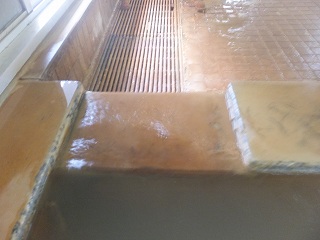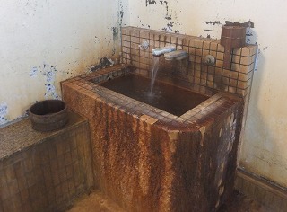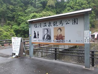 ![]() _____(入り口にある看板)____________(坂本龍馬お龍 新婚湯治碑) 入り口にある橋を渡った所にある受付で入浴料金を払ったら「坂本龍馬とお龍さんが日本 最初の新婚旅行をした時に もっとも長く逗留(18泊)したのが塩浸温泉で、その日を今の暦に 直すと150年前の今日だ」ということで 記念の絵葉書をいただきました。 ※ 龍馬とお龍さんは、この時 高千穂峰に登っています。 ![]() ________(受付棟)_________________(ふるさと絵葉書) 受付棟の奥にある縁結びの足湯では、湯口で 温泉玉子を作っていました。 ![]() _(無料で利用できる 縁結びの足湯)____________(湯口の温泉玉子) 縁結びの足湯の裏に 坂本龍馬とお龍さんが来訪した時に歩いたといわれる石段が残る 龍の背坂門と簡単な売店があって・・ ![]() ______(龍の背坂門)________________(霧島 龍馬のお店) その奥に 龍馬とお龍の湯があります。 男女の浴室は週ごとに入れ替わるそうで、この時の男湯は お龍の湯でした。 ![]() _____(龍馬とお龍の湯)____________(浴室の入り口にかかる湯のれん) 広い脱衣所の左の壁にロッカーと脱衣棚が並んでいて、右に 長イスと洗面台があります。 ![]() ________(脱衣所)_________________(長イスと洗面台) 脱衣所にある温泉成分表によると 源泉は2つあって、鶴の湯は 源泉名が塩浸1号、塩浸の湯 は 源泉名が塩浸9号で、泉質は どちらも ナトリウム・マグネシウム・カルシウム-炭酸水素塩 温泉で、加水・加温・循環はしていないが 衛生管理の為に塩素消毒をしているそうです。 (温泉成分表)浴室に入ると 右に温泉が出ている かけ湯があって、左の壁に洗い場が並んでいますが、 共同浴場なので ソープ類は置いてありません。 ![]() ________(かけ湯)__________________(洗い場) 浴室は素朴さを感じさせる作りで、床のタイルは 温泉由来成分で茶色くなっています。 (浴室)浴室の中央の右に 1人しか入れない鶴の湯があります。 猟師が、傷を受けた鶴が渓谷に下りて傷を癒していたのを見て この温泉を発見したそうで、 切り傷や胃腸に効能があると言われます。 (鶴の湯)わずかに色付いて見える鶴の湯は 鉄の味と同時に苦い味がして、ぬるめの温泉は やさしい 肌触りです。 ![]() ______(鶴の湯の湯口)_____________(浴槽の溝から流れ出る温泉) 奥にある塩浸の湯の浴槽は6人が入れる大きさで、岩に白い塩のようなものが付くことから 塩浸温泉と呼ばれるそうです。 (塩浸の湯)笹にごりの温泉の温度は適温で、鉄の味と同時に 甘味を伴った苦みがして、こちらも やさしい 肌触りです。 ![]() _________(湯口)_______________(浴槽からあふれる温泉) 塩浸温泉は 1867年(慶応3年)に岡本助八が浴場を設けて、龍馬が訪れた当時は 両岸に 旅館が並ぶほど繁盛していたそうですが、現在は 道路側の川岸は駐車場になっています。 (浴室から見た駐車場、右奥に橋)