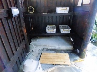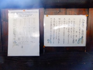 128号線で鴨川から勝浦に向けて走り、安房天津の手前からバイパスに入って3つ目のトンネル を抜けた所で左折して清澄養老ラインを登って行くと 3kmほどで右に清澄寺の案内があって、 そこから狭くてカーブのきつい林道を約4km走ると右にあります。 ![]() _______(白岩館)____________(露天風呂の外壁にある お地蔵様) 立ち寄り入浴を申し込んだら 温泉が適温になっていないというので、囲炉裏のある食事処で 待ちました。 その間に麦とろ定食を食べましたが、とろろは すり鉢で摺っているものの ご飯は白米で、 自家製のユズ味噌が付いていたものの味噌汁もぬるくて これで1200円は高いと思いました。 ![]() _______(囲炉裏)_________________(麦とろ定食) こちらの露天風呂は千葉県で最古で、しかも最高地点にあるそうです。 ![]() _(露天風呂の入り口にある案内)_______(しめ飾りが付いた露天風呂の通路) 露天風呂には 円まんの湯と団らんの湯があって、それぞれが貸切りになっています。 (円まんの湯) 円まんの湯は 簡素な作りの脱衣所の上にだけ屋根がかかっています。 (脱衣所)温泉成分表によると 源泉名は白岩旅館で、泉質の所に 総硫黄、メタほう酸、メタけい酸の 項で温泉法の温泉に適合と書かれていました。 ![]() ___(温泉成分表と入浴心得)______________(読めるかな) 脱衣所に劣らず洗い場も粗末な作りですが ソープ類の数は多い。 (洗い場)浴槽は2人が入れる岩風呂で、右上にある湯口のような痕跡からは温泉が出ていません。 笹濁りの温泉はツルスベの肌触りで 石灰のような匂いがしましたが、湯口が浴槽の中 だったので 味は確認できませんでした。 特筆すべきは泡付の良さで、腕や足に みるみる小さな気泡が付きました。 (円まんの湯の浴槽)浴槽内に出ている温泉は 浴槽の横にある 湯・水と書かれた蛇口のバルブで調整します。 温泉は掛け流しで、浴槽からあふれた温泉は 石組みの隙間から排水口に流れ込んでいます。 ![]() _____(湯と水のバルブ)__________(石組みの隙間から流れ出る温泉) 温泉は杉林に囲まれているので自然の中にいるのが実感できますが、杉には 大きく膨らんだ 実が沢山付いてたので、花粉症の人が利用する場合は 時期を考えた方が良いと思います。 (露天風呂から見た杉林)(団らんの湯) 脱衣所と洗い場は こちらも似たような作りですが、屋根は 浴槽の上にまでかかっています。 ![]() ___(団らんの湯の脱衣所)__________(脱衣所にある竹製の腰掛け) (団らんの湯の洗い場)こちらも岩風呂で 円まん湯のよりも大きいが、圧迫感を感じる屋根と岩の間からオシッコの ような感じで出ている温泉は風情がなかった。 ![]() ___(団らんの湯の岩風呂)_____________(隙間が少ない屋根) _____ |