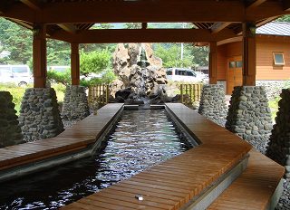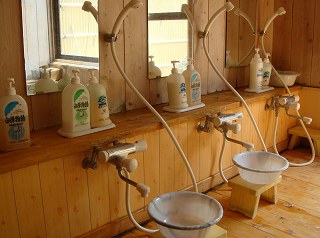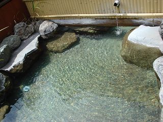 JR松本駅下車乗り換え上高地線新島々駅下車バスにて40分。 長野道の松本インターより国道158号線で約50分。 沢渡では 沢渡上と沢渡下にある大きな駐車場に隣接した温泉施設が有名なのですが、 北アルプスの長い縦走を終えた後だけに もっと落ち着けて温泉の効能が期待できそうな 温泉に入りたかったので、沢渡中のバス停から少し離れた所(徒歩5分)にある杣乃家で 立ち寄り入浴をしました。 ![]() __(沢渡中のバス停にある足湯)____________(ホテル杣乃家) 宿自体は新しくありませんが、脱衣所と浴室はリニューアルされてキレイになってました。 ![]() _______(フロント)___________(浴室の入り口に掛かる湯のれん) 脱衣所は広くありませんが、壁はキレイな木目で 洗面台周りも清潔感があります。 ![]() ____(籐の籠の脱衣棚)______________(洗面ドレッシング) 脱衣所に 面白い事が書かれた手ぬぐいが貼り付けてありました。 ![]() _______________(読めるかな) 浴室も木造りで、洗い場も 隅々まで清掃が行き届いてます。 (洗い場)浴槽は小さいが、浴槽の底に使われていた 適度に年季が入った木の感じが良かった。 沢山の湯の花が浮遊する温泉は適温で キュッキュとした感じの肌ざわりです。 温泉は源泉掛け流しで 浴槽の溝からあふれた温泉は排水溝に流れ込んでいます。 (ヒノキ造りの浴槽、右手前に排湯溝)露天風呂は4〜5人が入れる岩風呂で、湯口の下が女性の浴槽と繋がっています。 周囲は天然の雑木林に囲まれてますが 塀が近すぎて開放感は いまひとつです。 (露天風呂)他の客がいなかったので、素晴らしい温泉を貸し切りの状態で利用できて大満足しました。 (大自然の中だけに・・) 露天風呂に 小さな足長バチの巣が2つあって、裸の状態で露天風呂の塀にある巣を見つけた 時は ビックリしました。 こちらが危害を加えない限り襲ってくる事はないようですが、何も知らずに露天風呂の写真を 撮っていた時は 50センチぐらいまで近づいたと思います。 (露天風呂の塀にあったハチの巣)_____ - - - - - - - - - - - - - - - - - - - - - |
