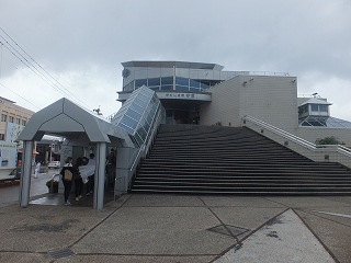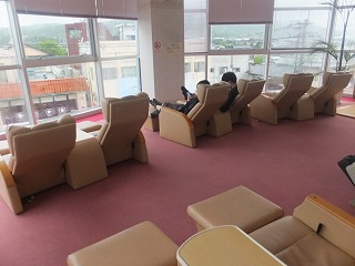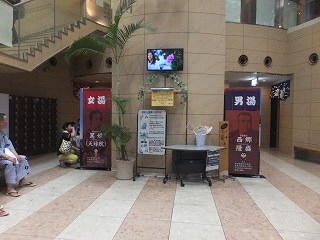 (※1) 12:00〜13:00の間は 清掃等のため受付休止。 (※2) 温泉のみは610円で、その他に 貸し出しの浴衣とバスタオルセットが200円、持ち帰りの __-フェイスタオルが120円。 (砂むし会館 砂楽)エレベーターで2階に上がった所にある受付で 浴衣とバスタオルのセットを受け取ります。 ![]() ________(受付)________________(砂むし風呂用の浴衣) 受付の隣に特産品コーナーがあって、休憩ホールの壁に 名誉会長 金田正一氏のプレートが ありました。 ![]() _____(特産品コーナー)________________(休憩ホール) (金田正一の経歴)浴衣とバスタオルを持って1階に下りると、吹き抜けのホールの奥に 浴室の入り口があります。 ![]() _____(1階に下りる階段)_______________(浴室の入り口) 以前利用したことがある 指宿いわさきホテルでは、砂をかける人がデジカメを持った客を見ると 砂をかけた姿の記念写真を撮ってくれたのですが、こちらの施設はデジカメの持ち込みが禁止 でした。 ![]() _(浴室の入り口に掛かる湯のれん)____________(撮影禁止の注意看板) ここにある温泉分析書と温泉効能表によると 源泉名は摺ヶ浜50号、 泉質は 塩化物泉で、 温泉の成分に影響を与える項目に 加水・循環・塩素消毒をしていると書かれていました。 (温泉分析書)脱衣所で浴衣に着替えたら、フェイスタオルだけ持って 海岸にある砂蒸し風呂に移動します。 (上から見た 砂むし風呂の屋根)砂むし風呂に着いたら 係りの人が指示した所に寝転んで砂をかけてもらうのですが、この砂が かなり重かった。 砂は 地下からの熱で温められているので、お腹の方は適温でも 背中は かなり熱かった。 砂風呂から上がったら温泉棟に行って、浴衣を脱いで かぶり湯をして砂を落としてから温泉に 入ります。 浴室に入ると 右に洗い場があって、左奥に 15人が入れる大浴槽があります。 温泉には湯口がなかったので味わえなかったが しょっぱそうな感じで、塩素臭がきつかった。 温泉は適温で 浴槽からオーバーフローになっていました。 (湯あがり) 温泉から上がった後、3階のリラックスルームにあるリクライニングシートで しばらく寝ました。 ![]() ____(リラックスルーム)________________(マッサージ機) (部屋の隅にある畳敷きのスペース) (3階にある食事処 隆)_____ - - - - - - - - - - - - - - - - - - - - - |
