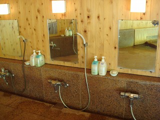 上信越自動車道の下仁田インターを出たら254号線を西進し、最高所にある内山トンネルの 1分ほど先で右に入ったら、すぐ左下に下りて狭い林道を5分ほど走った終点にあります。 ![]() _(右に日本秘湯を守る会の提灯)______(宿の横を流れる川、右に 紅白のハナモモ) 山あいの一軒宿ということで ひなびた宿をイメージしてましたが 建物は新しく、作りも 落ち 着いた色調でセンスの良さを感じさせる宿です。 ![]() __(玄関に飾られている長持)__________(フロント、右の棚は土産物) 館内には歴史のある調度品が並んでいて、ロビーは 静かで落ち着いた雰囲気です。 (時間を忘れさせてくれるサロン)浴室は フロントから左に行った廊下の奥にあって、木を ふんだんに使った脱衣所も快適です。 ※ 脱衣棚に付いていた小物置の棚に 宿の気配りが感じられます。 ![]() (小物置の台(中段)が付いた脱衣棚)_____(画像をクリックすると拡大します) 洗面台の作りは簡素で、ドライヤーが男女共用の所にしかなかったのは ちょっと不便かも・・。 (洗面台の上に使い捨てのヒゲソリ)浴室は 洗い場の小物を置く台から下に赤御影石が使われていて、小物を置く台から上には 木目のキレイなヒノキが使われています。 (清潔感のある洗い場)窓に面した浴槽は、左が真湯で 右が冷鉱泉を加温した温泉が掛け流しになっています。 窓が大きくて明るい浴室は半露天風呂のような開放感があって、窓の下に流れる川の対岸 には 紅白のハナモモが咲いていました。 ![]() ___(手前が真湯で 奥が源泉)__________(鉄分を含んだ茶色の温泉) 湯口から出ている源泉の色は透明だったので、空気に触れると酸化して茶色くなるようです。 (湯口から出ている源泉は水温でした)源泉掛け流しといっても 流れっぱなしではなくて、人が出入りして水位が下がったら 湯口の 右にある水位センサーが感知して、その分だけ源泉が投入されるようになっています。 温泉の温度は 窓側にある丸いセンサーで感知して、一定の温度より下がると 湯口の左に ある木箱の中の熱交換器にスチームが流れて加温するようになっていますが、温泉の温度が ぬるめに抑えられていたので、山歩きで火照った筋肉を冷やすのに都合良かった。 (熱交換器を覆う木箱)浴槽の周りに温泉成分の茶色い結晶が出来ていて、浴槽から源泉が流れ出す切れ込みの所 には 他より沢山の結晶が出来ています。 (排水溝に出来た温泉成分の結晶)温泉が茶色いのは鉄分の影響だと思いますが、口にすると 希硫酸のような匂いとマグネ シウムのような苦い味がしました。 荒船山でハイキングした後に これほど素晴らしい温泉を貸し切りの状態で利用できて大満足 しました。