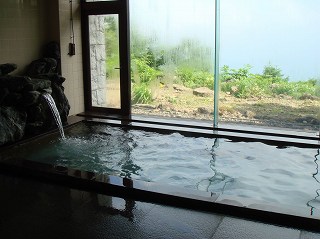 上信越道の小諸インターから浅間サンラインとチェリーパークラインで約16km。 (高峰高原ホテル)この時は 車坂峠にあるヤナギランの群生地にアヤメとニッコウキスゲが咲いてました。 ![]() _______(車坂峠)______________(左手前にアヤメの群生) 標高2000メートルの避暑地にあるホテルで フロントの対応も良かった。 (フロント)待合所には 周辺で撮影した写真が沢山飾られています。 ![]() _______(待合所)____________(浴室の入り口に掛かる湯のれん) 脱衣所は適度な広さで 隅々まで清掃が行き届いています。 ![]() ___(脱衣棚と貴重品ロッカー)___________(洗面ドレッシング) 脱衣所にある温泉成分表によると 源泉名は 布引1号泉、泉質は ナトリウム塩化物泉で、 温泉は 近くにある源泉からタンクローリーで運んでいると書かれていました。 (温泉成分表)タイル張りの浴室は清潔感があり、浴槽の大きさに対して洗い場の数が多くて タイマー式で ないシャワーも使いやすかった。 マイナスポイントは お茶の成分入りのボディーソープで、泡立ちが悪いうえに 体に付いた お茶の臭いが なかなか取れなかった。 (洗い場)循環した温泉に タンクローリーで運んで来た源泉を加える半かけ流しの温泉は、湯口で わずかに温泉臭がしたものの 肌触りに温泉らしい特徴を感じませんでした。 ![]() ________(浴槽)___________________(湯口) 雲上の温泉という素晴らしい立地にあのに露天風呂がなく、この日は 午後から発生した霞の おかげで ガラス越しの景色も楽しめませんでした。 ![]() (前面に大きなガラスが使われた浴槽)___________(浴槽の右側) ____ - - - - - - - - - - - - - - - - - - - - |