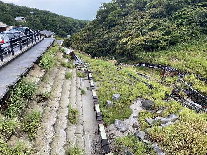 (駐車場の下にある湯畑)