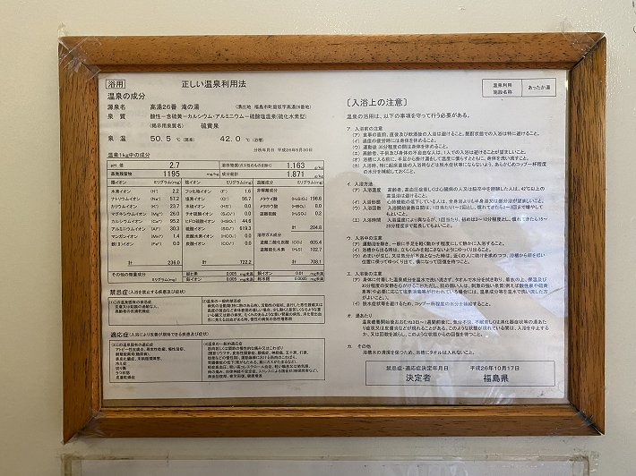 ここにある温泉成分表によると源泉名は高湯26番 滝の湯で 泉質は